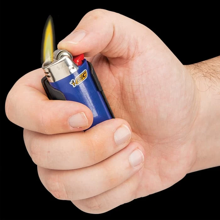 Our Lighter Caddy Pocket Knife assures that you have the two most important tools on you when you’re out and about – a lighter and a knife. Just clip this combination lighter case and knife to your belt and you’re completely prepared for any situation that comes your way. The knife has a razor-sharp 2” black 420 stainless steel electroplated blade, which can be deployed using the assisted opening mechanism and flipper. The matte aluminum lighter case, which also serves as the knife’s handle, features a stainless steel liner lock. A sturdy black metal pocket clip lets you carry it anywhere and the case will fit Bic brand lighters. This comes in 7 different color options.